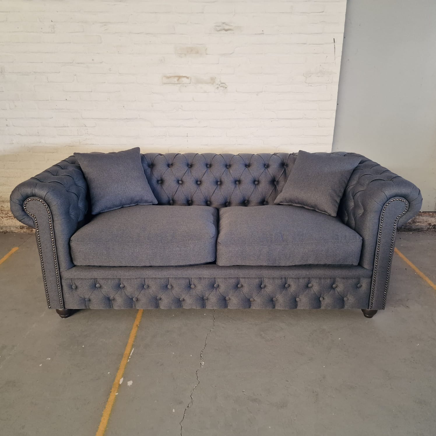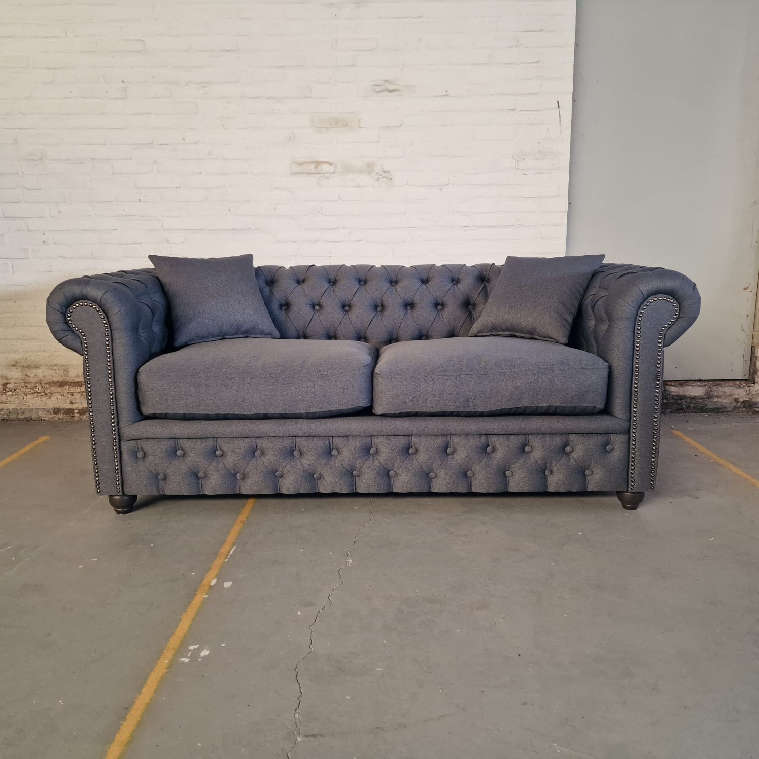 Design: Klassiek Chesterfield met diepe capitonnering, siernagels en rolarmen
