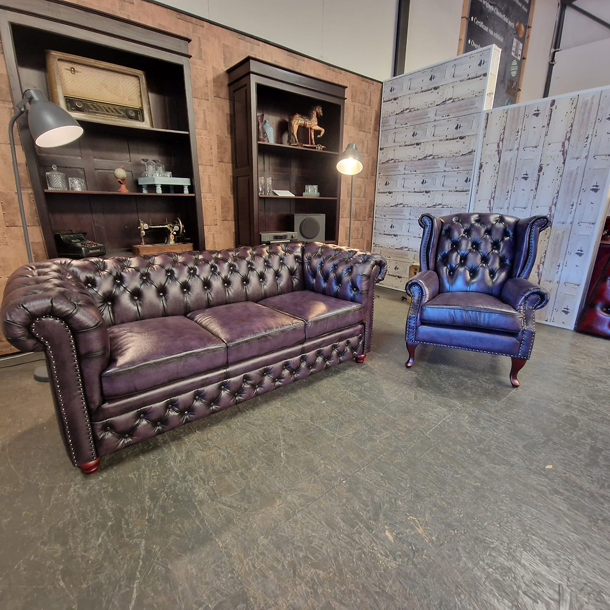 De Chesterfield Brighton 3-zits in antiek paars combineert klassieke elegantie met een unieke en luxueuze uitstraling. Vervaardigd uit hoogwaardig leder en voorzien van handgeknoopte capitons en sierlijke rolarmleuningen, ademt deze bank de authentieke Chesterfield-stijl.