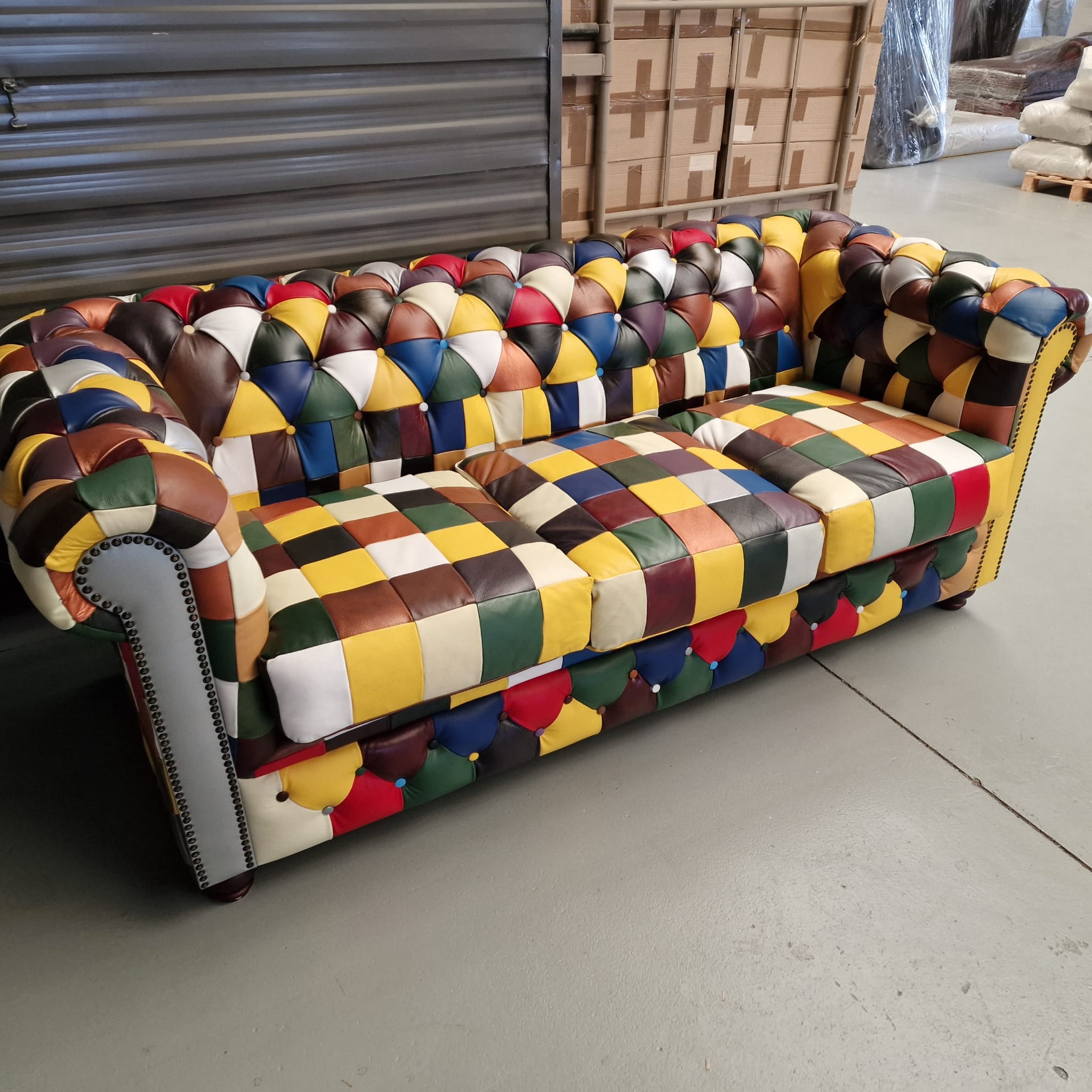 Kenmerken: Diepe capitonnering, klassieke gerolde armleuningen, handgeplaatste siernagels
