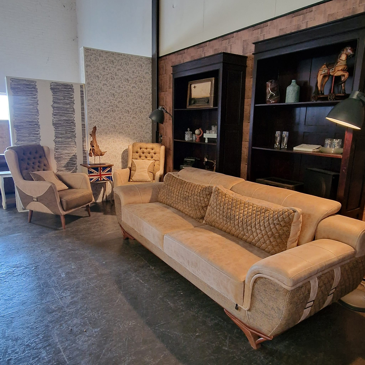 De handgeknoopte capitons, sierlijke rolarmleuningen en verfijnde afwerking geven dit ensemble zijn authentieke karakter. Het hoogwaardige design zorgt voor een stijlvol geheel dat jarenlang woonplezier biedt.