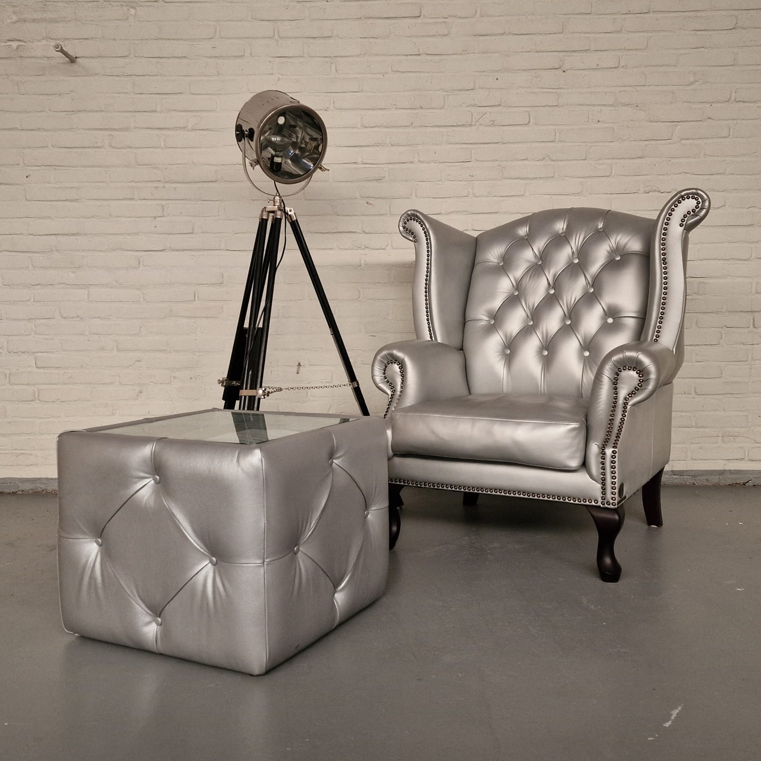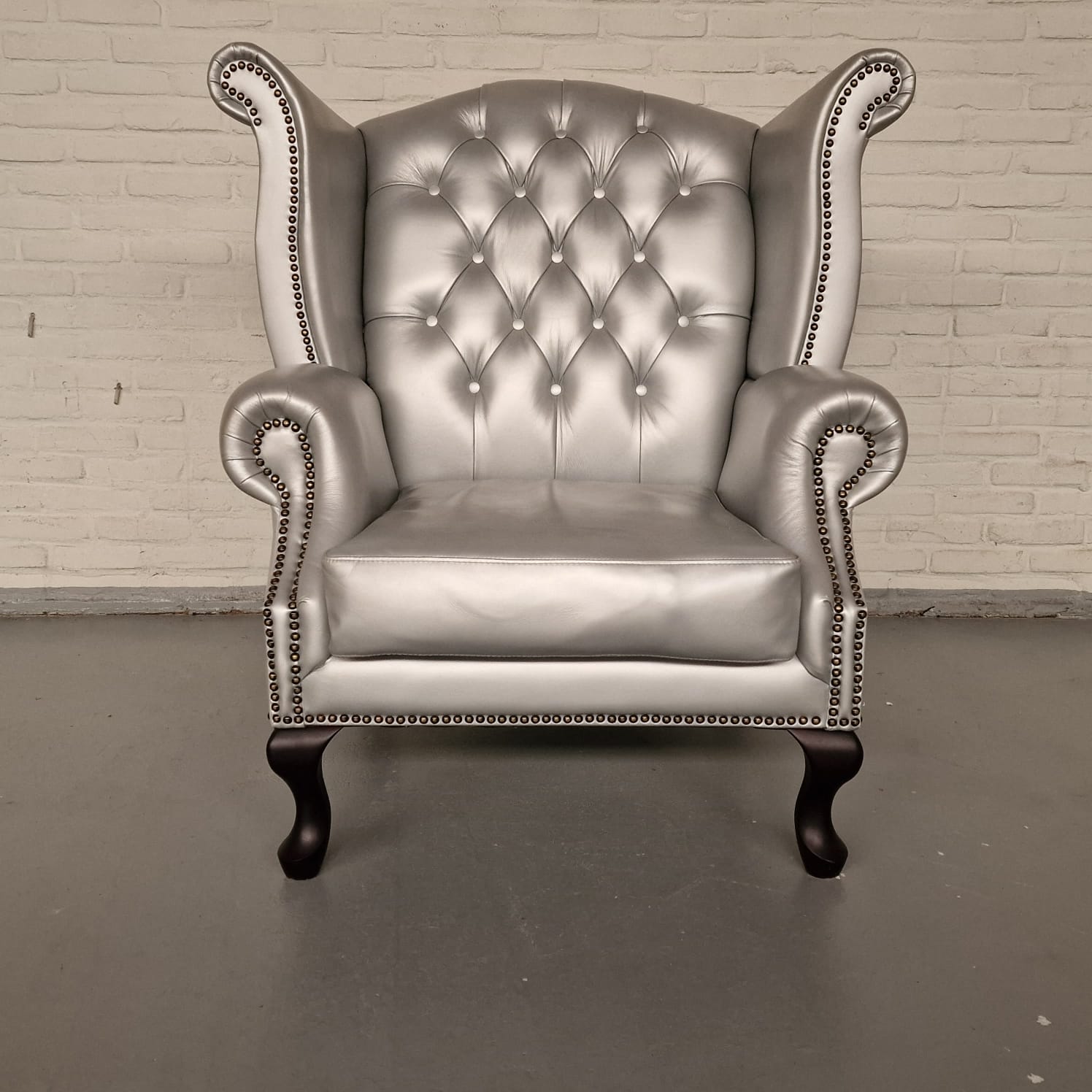 King Classic Chesterfield Fauteuil – Zilver, Leer