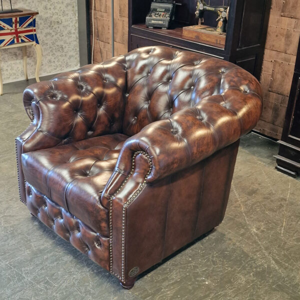 Leather Chesterfield Charlston Armchair – Antique Brown (SA)