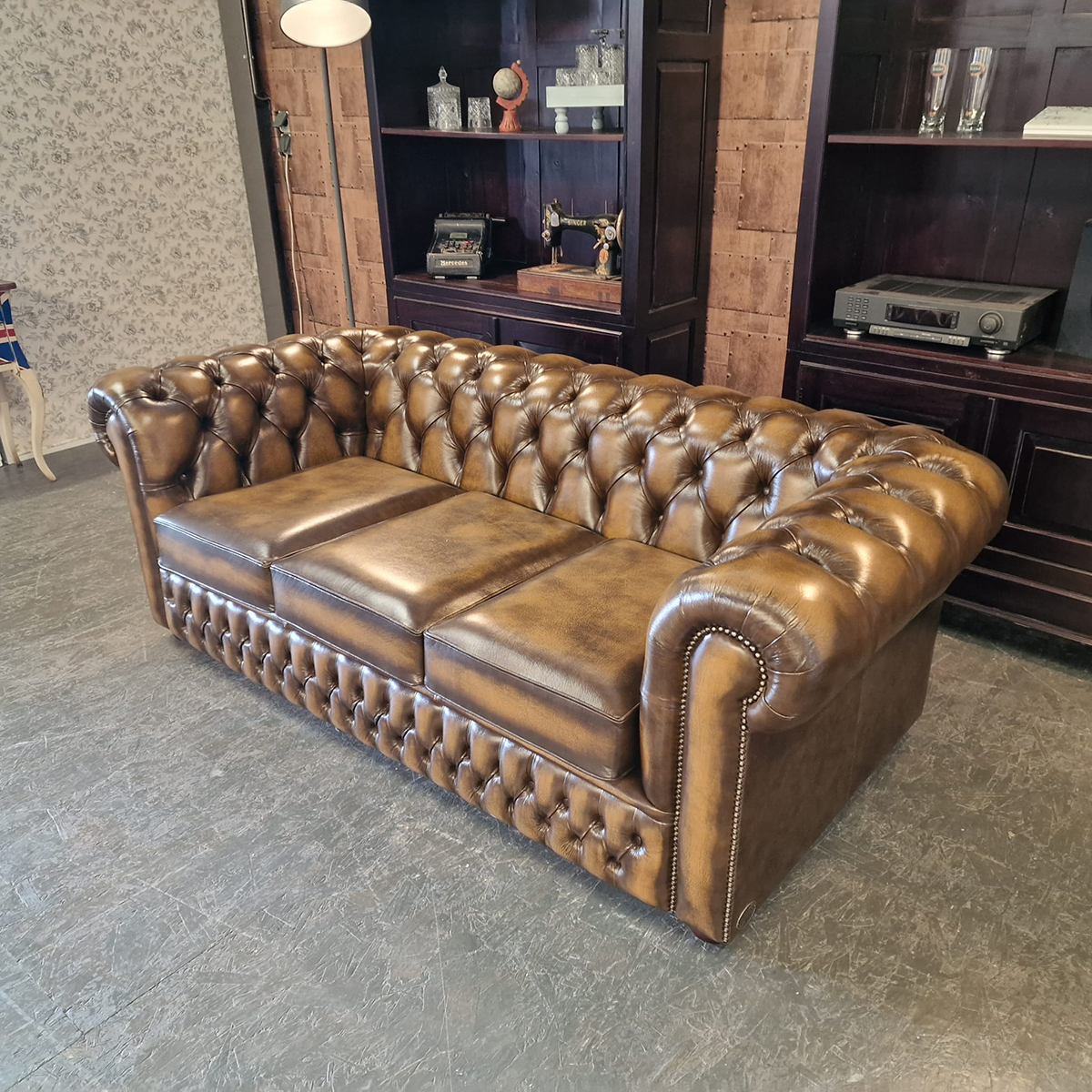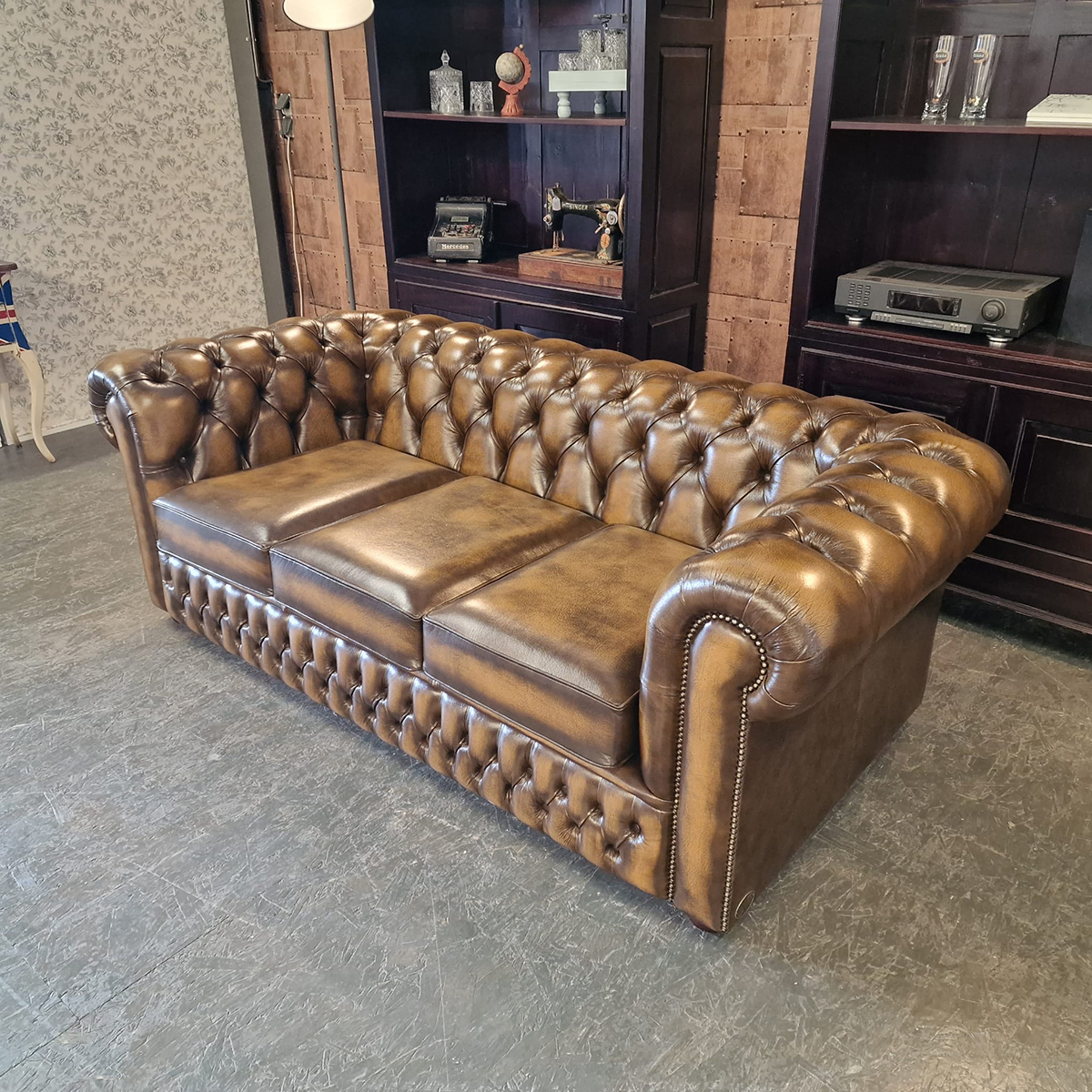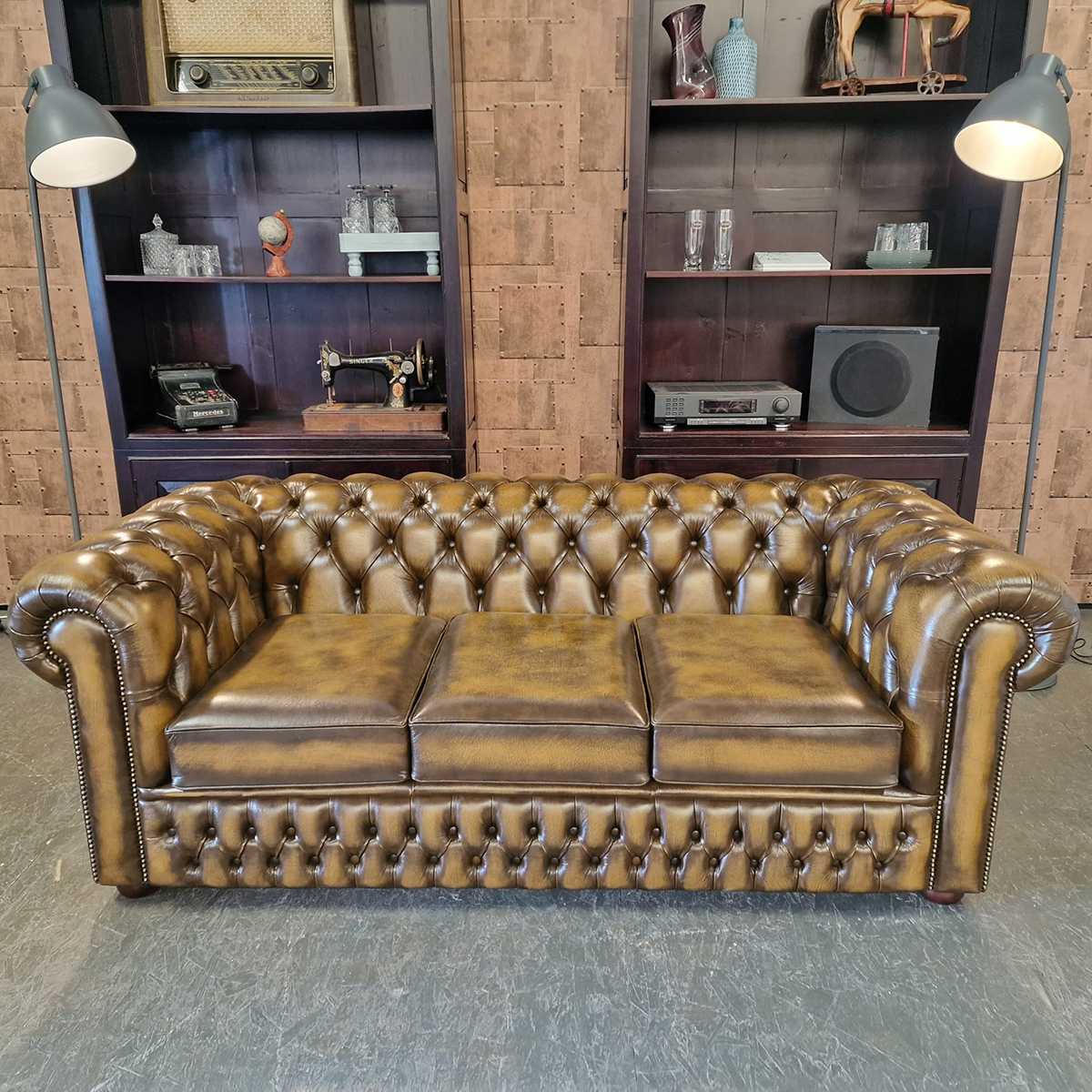 The Chesterfield Chesham 3-seater in Antique Gold is a luxurious and striking sofa that combines classic Chesterfield elegance with modern comfort.