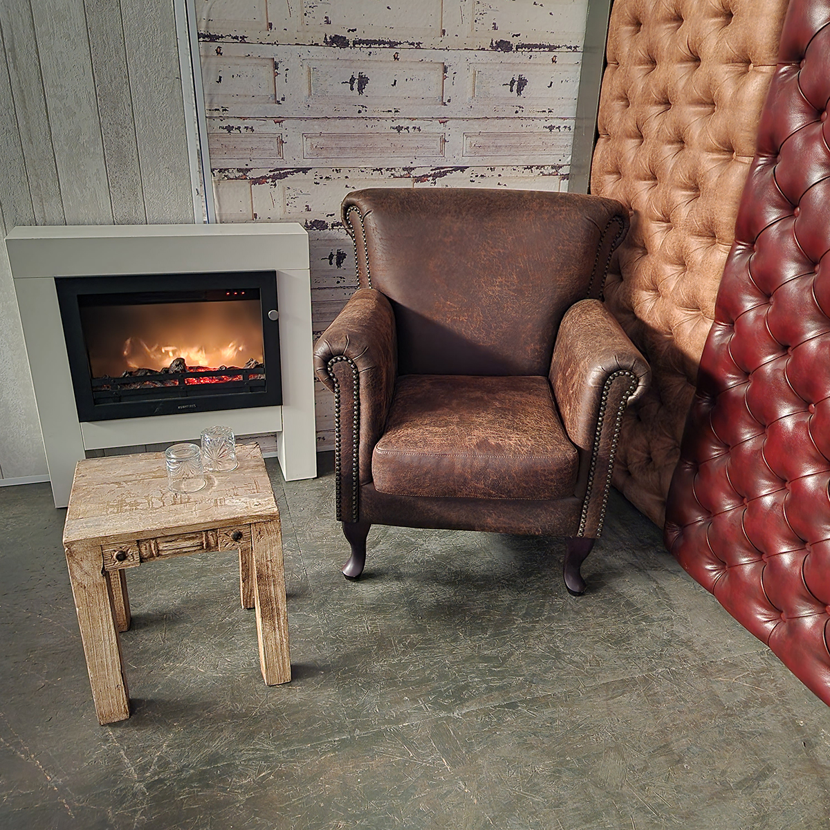 Crawley Classic Chesterfield Armchairs SET – Antique Red, Full Leather